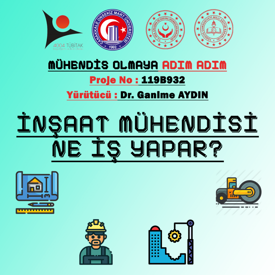TÜBİTAK 4004 – Doğa Eğitimi ve Bilim Okulları 2019-2020 Çağrı Dönemi kapsamında desteklenen “Mühendis Olmaya Adım Adım” projesi, temel olarak Mühendislik Bilimi’nin günlük hayattaki ve teknolojideki uygulamalarının eğitiminin yanında mühendislik mesleklerinde ne olduğunu yaparak ve yaşayarak öğrenme yöntemine göre uygulanması amaçlanmıştır.